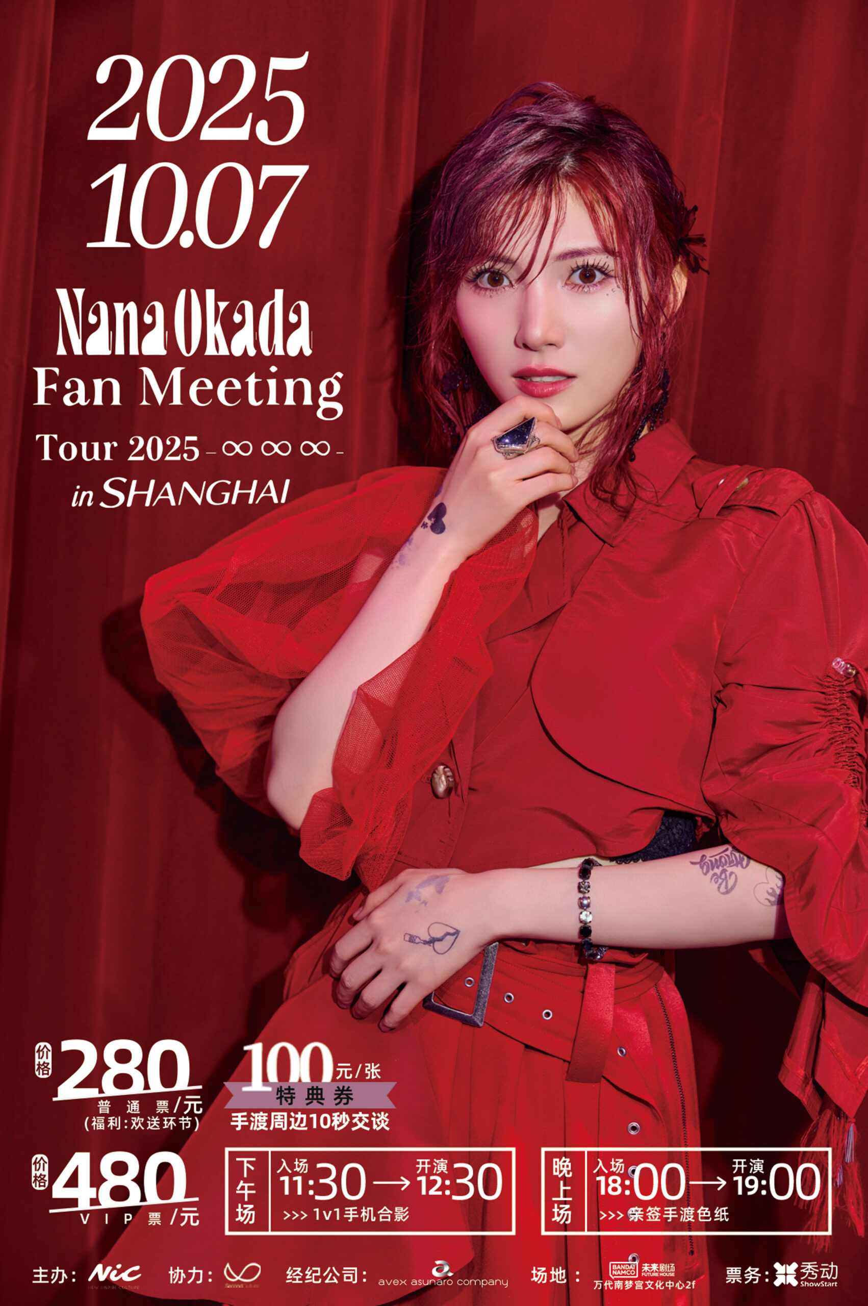 10月7日 Okada Nana Fanmeeting Tour 2025-♾️♾️♾️-in SHANGHAI 将在上海万代南梦宫文化中心2F 未来剧场举行。